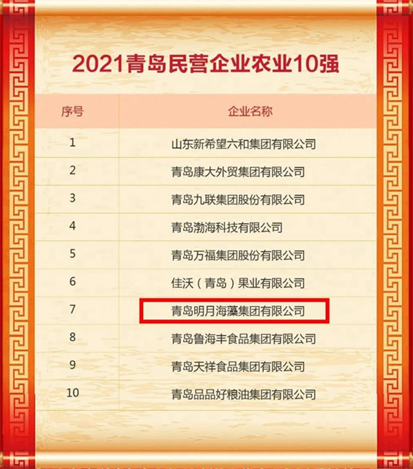 8月25日 明月海藻集團(tuán)入選青島民企百?gòu)?qiáng),位列第50位。