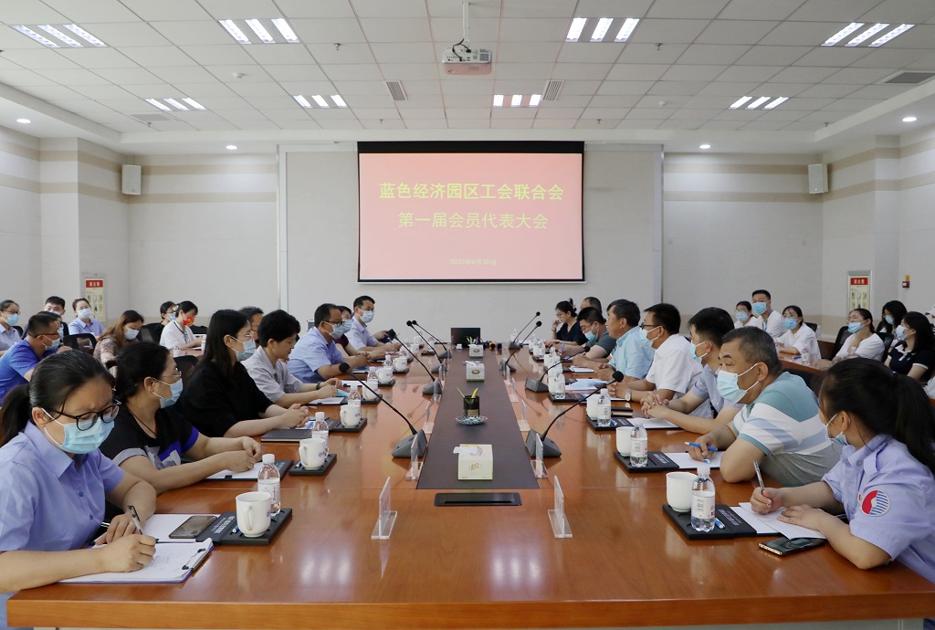 6月30日 藍(lán)色經(jīng)濟(jì)園區(qū)工會(huì)聯(lián)合會(huì)成立大會(huì)在明月海藻世界召開。